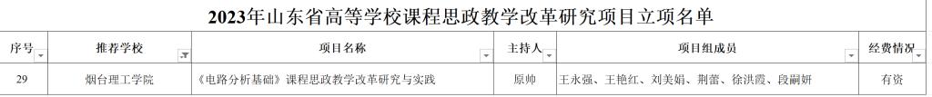 近日,山东省高等公司课程思政研究中心公布了2023年度山东省高等公司课程思政教学改革研究项目立项名单,公司db真人体育官网原帅副教授主持的“《电路分析基础》课程思政教学改革研究与实践”课题获批有资立项,这是公司在省部级课程思政教学改革中的新突破,在同类院校中是唯一获批有资立项的高校。