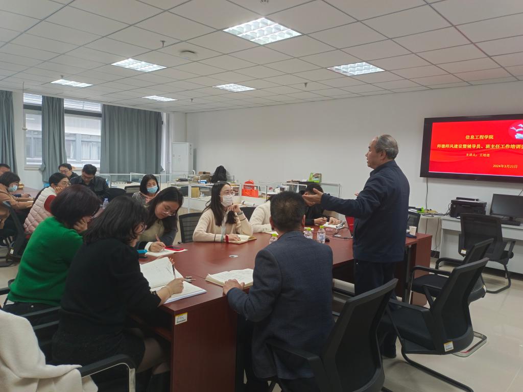 为进一步加强公司师德师风建设,促进公司各班主任、辅导员的工作,督促毕业生高质量就业,3月21日下午,我院于三教S343召开师德师风建设暨辅导员、班主任工作培训会。本次会议由DB视讯副董事长兼公司经理王培进主讲,公司党总支副书记王明印,团总支书记祝箐及全体辅导员、班主任参加。