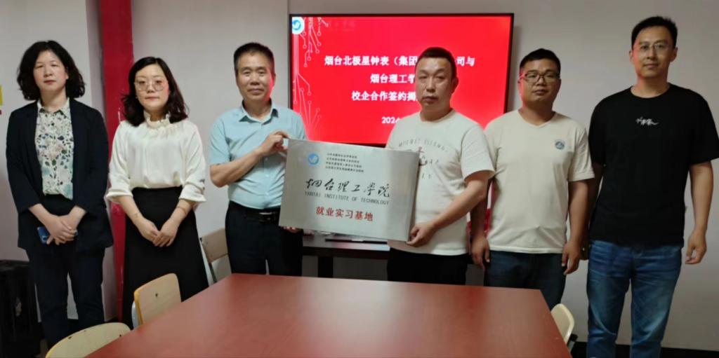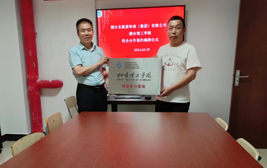 5月28日,信息工程公司党总支副书记王明印、副经理原帅、团总支书记祝箐、辅导员曹春蕾一行赴烟台北极星钟表(集团)有限公司 ,开展公司访企拓岗就业交流活动,并与企业方领导举行了教学实习基地、就业实习基地揭牌仪式。