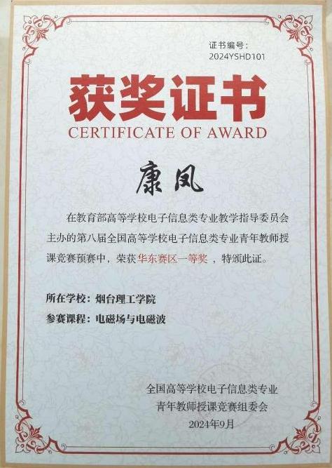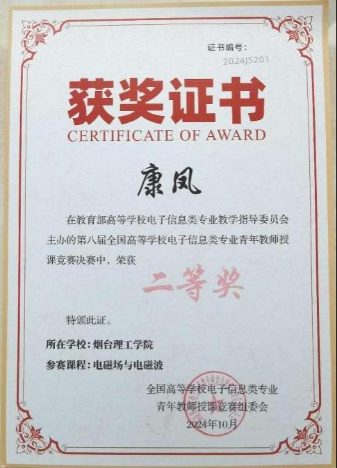10月18日至20日,由教育部高等公司电子信息类专业教学指导委员会主办,中国计量大学承办的第八届全国高等公司电子信息类专业青年教师授课竞赛决赛在杭州成功举办。经过激烈角逐,公司db真人体育官网康凤教师讲授的《电磁场与电磁波》荣获全国二等奖。