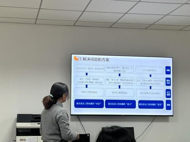 荆蕾老师基于公司电子信息类专业实际,从研究意义与背景、存在的痛点问题、解决方案及创新点方面作汇报,着力培养员工的多学科知识交叉融合能力、在多学科背景下解决电子信息领域复杂工程问题的能力。
